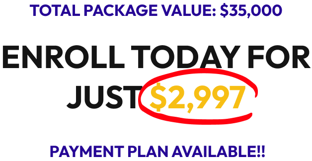 This comprehensive package offers a total value of $31,000, but you can enroll now for just $2,997.